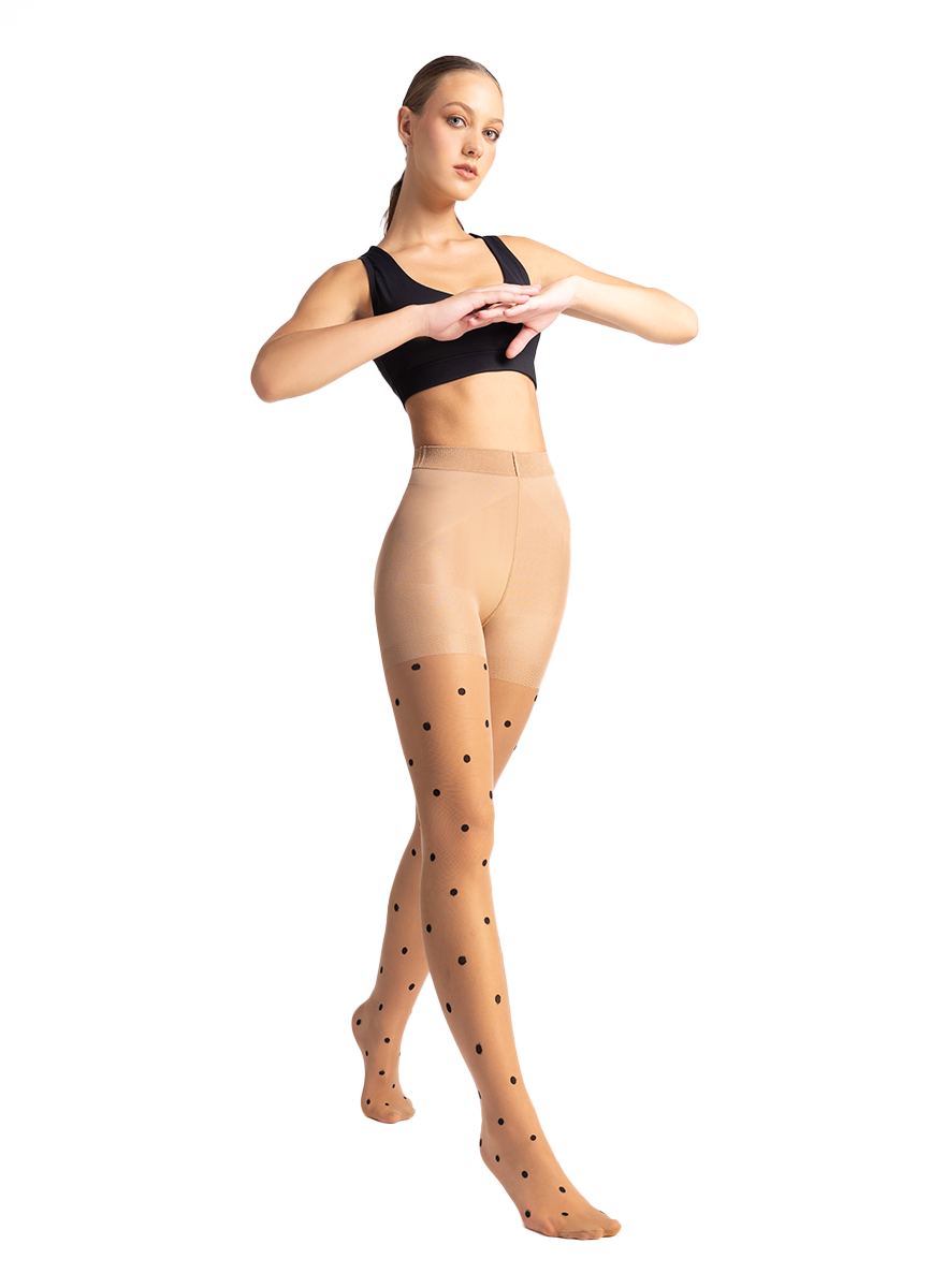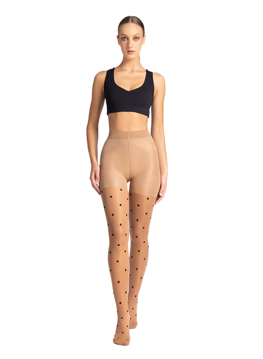 Our Belle push-up tights create a perfect silhouette under any clothing with its wrap-around effect on the belly, hips and thighs. The dotted pattern is perfect to accentuate a simple outfit.
