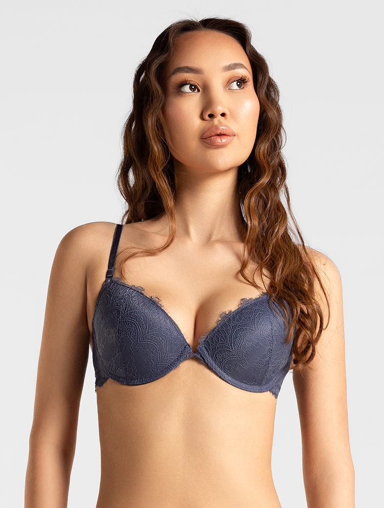 Throne Thin Half Cup Bra is available in two stunning soft colors, offering both elegance and comfort. Featuring delicate lace trims on the cups that resemble the softness of eyelashes, this bra creates a feminine, flirty look. - Lightly Padded