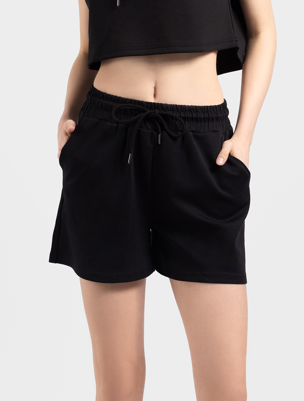 These sweat shorts are the ultimate off-duty essential, offering both comfort and style. Made from a refined cotton fabric, they provide a super soft feel and a relaxed mid-rise fit. The elasticated waistband with a drawstring ensures a customizable fit, while the two side slip pockets add convenience for your essentials. Perfect for lounging or casual outings, these shorts combine ease and practicality in one.