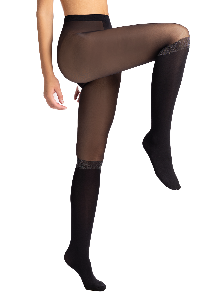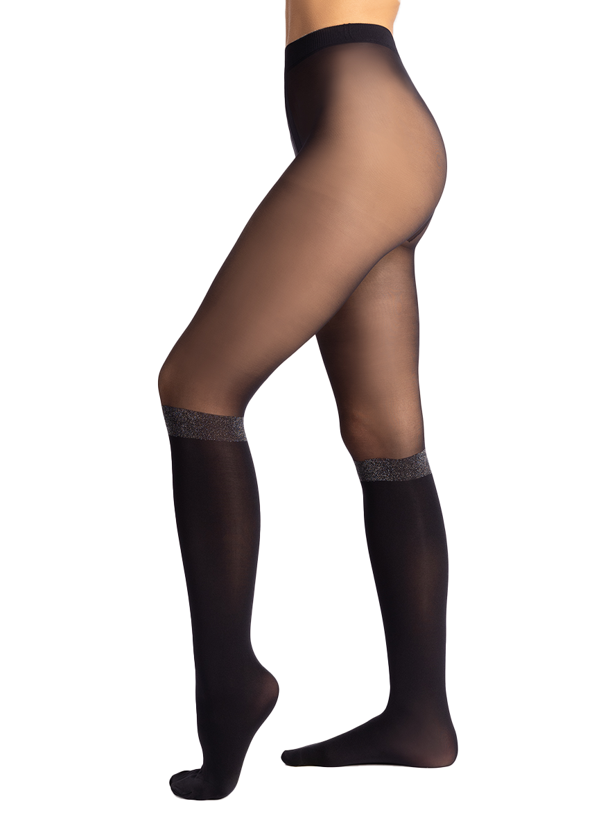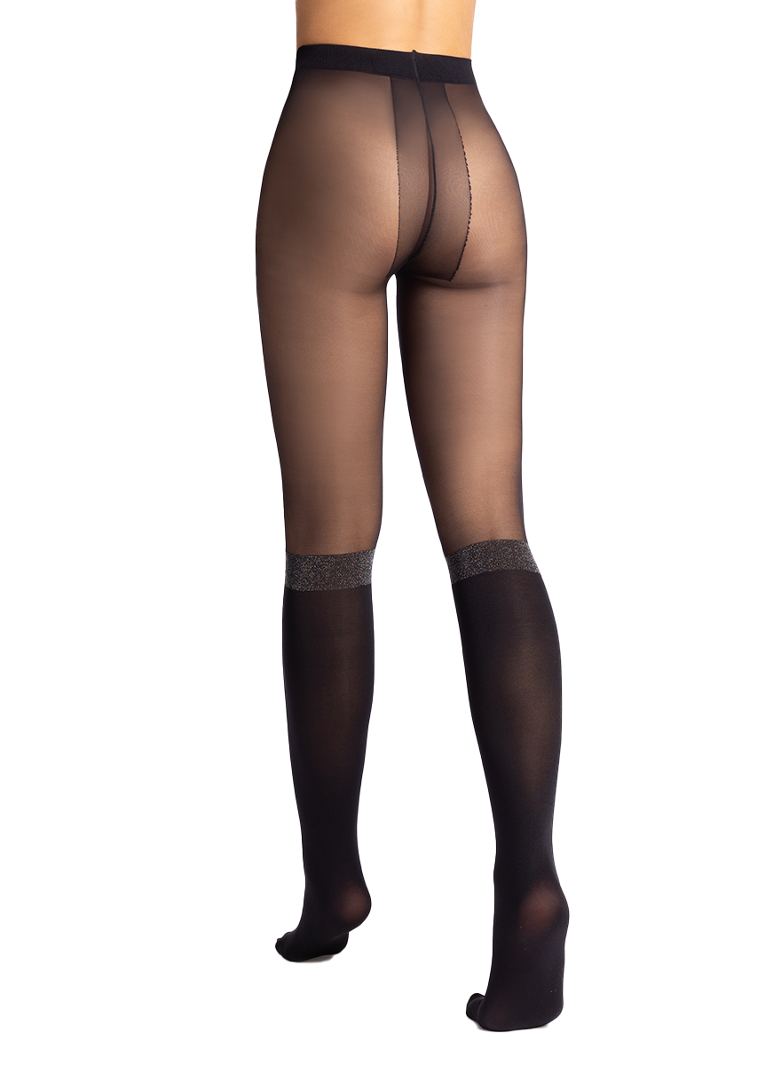 Our Devouée over the knee effect tights lighten up your outfit with a glitter band above the knee.