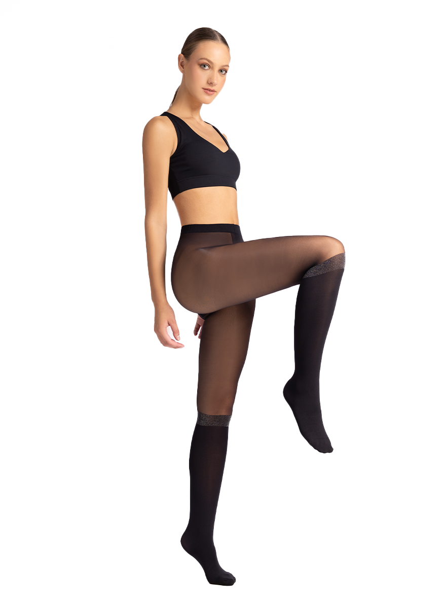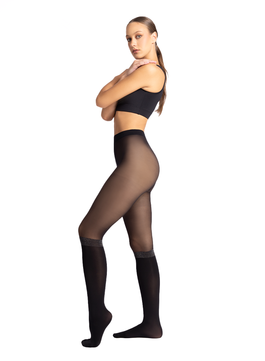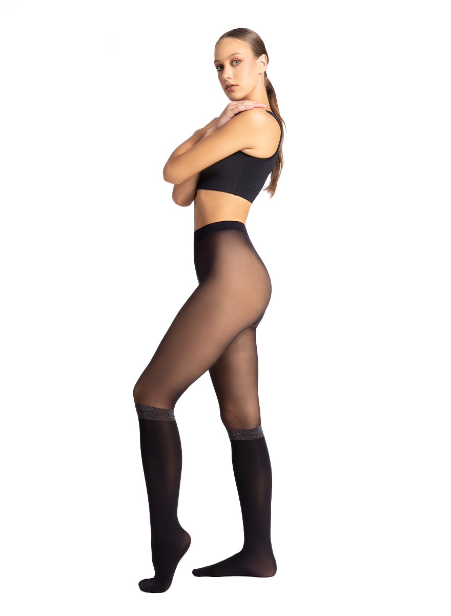 Our Devouée over the knee effect tights lighten up your outfit with a glitter band above the knee.