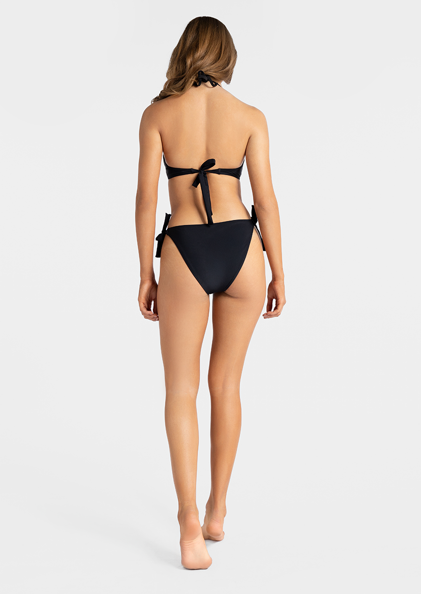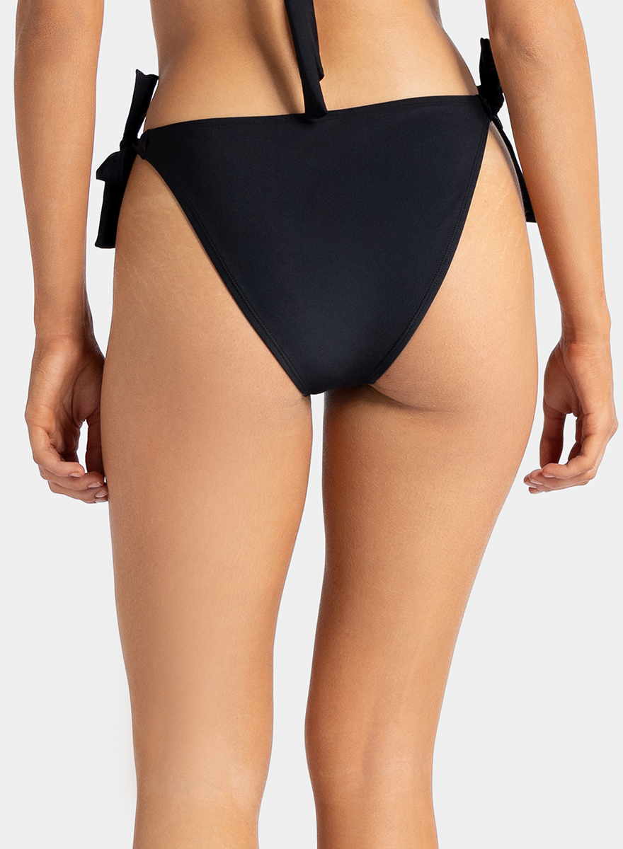 Crafted for a sleek and adjustable fit, these classic black bikini bottoms are a summer essential. The design prioritizes both comfort and style, featuring functional hardware-free details. Features wide side-ties at the hips, allowing for a personalized fit and a feminine touch.