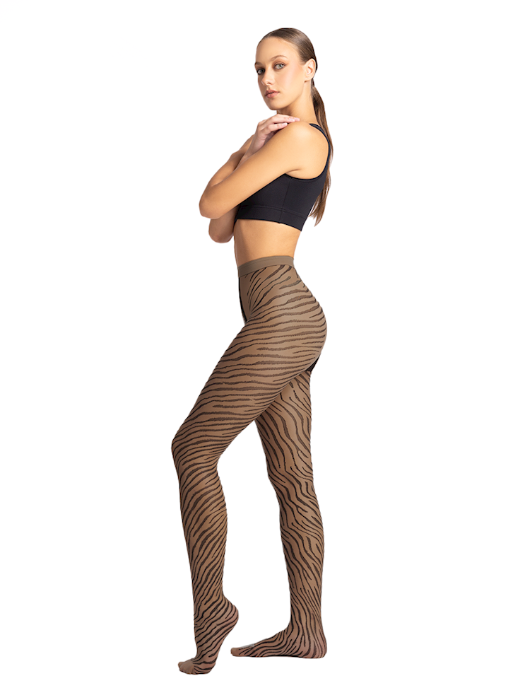 Our Fauve tights will give you an edgy look with its zebra pattern.