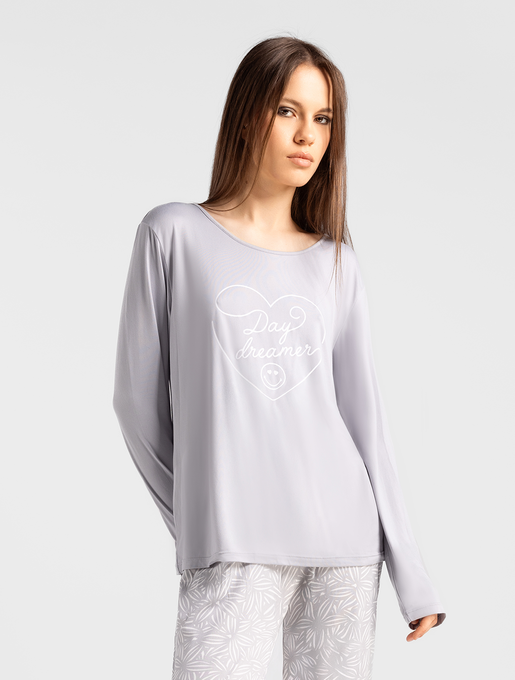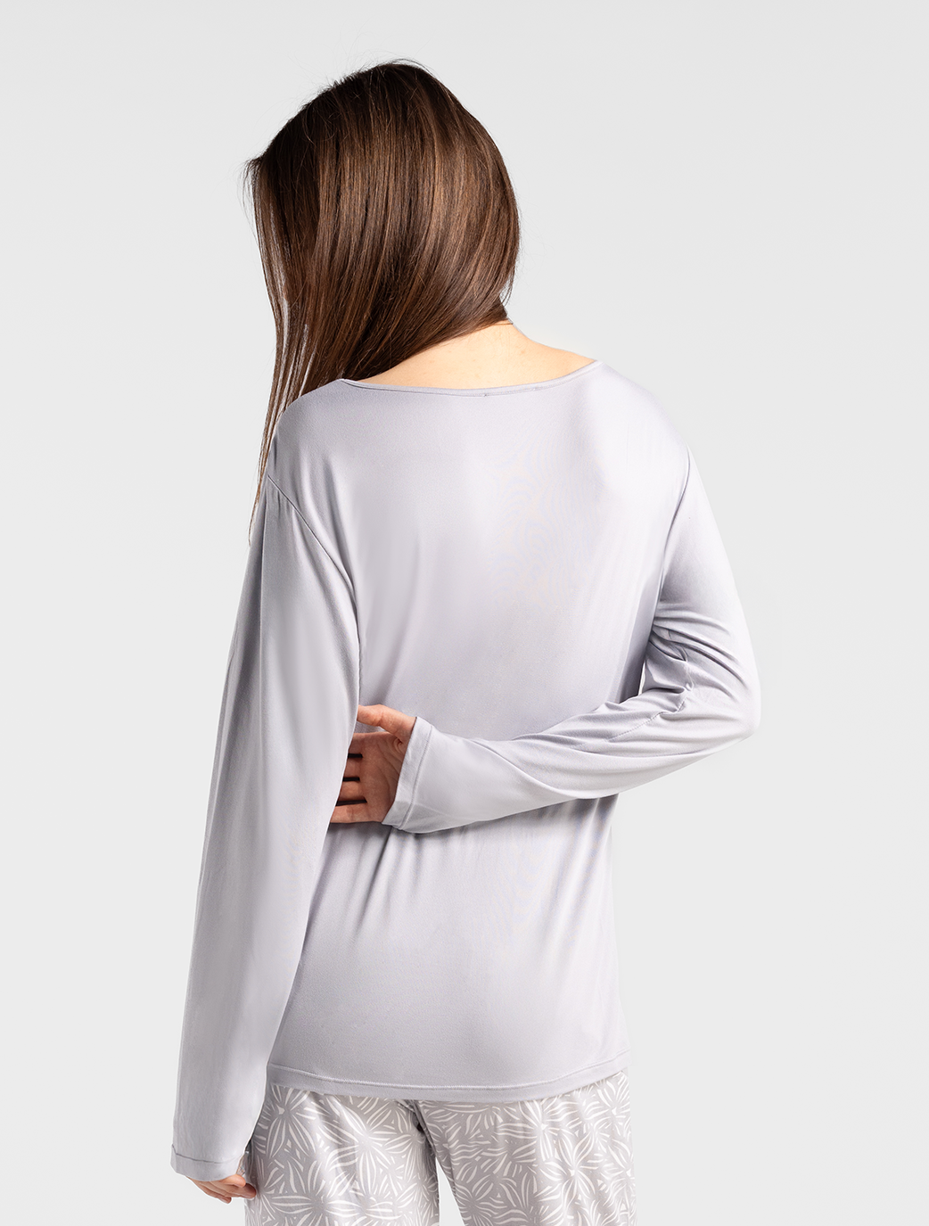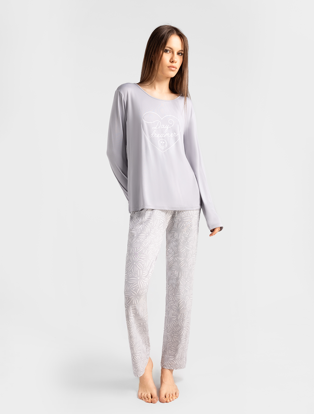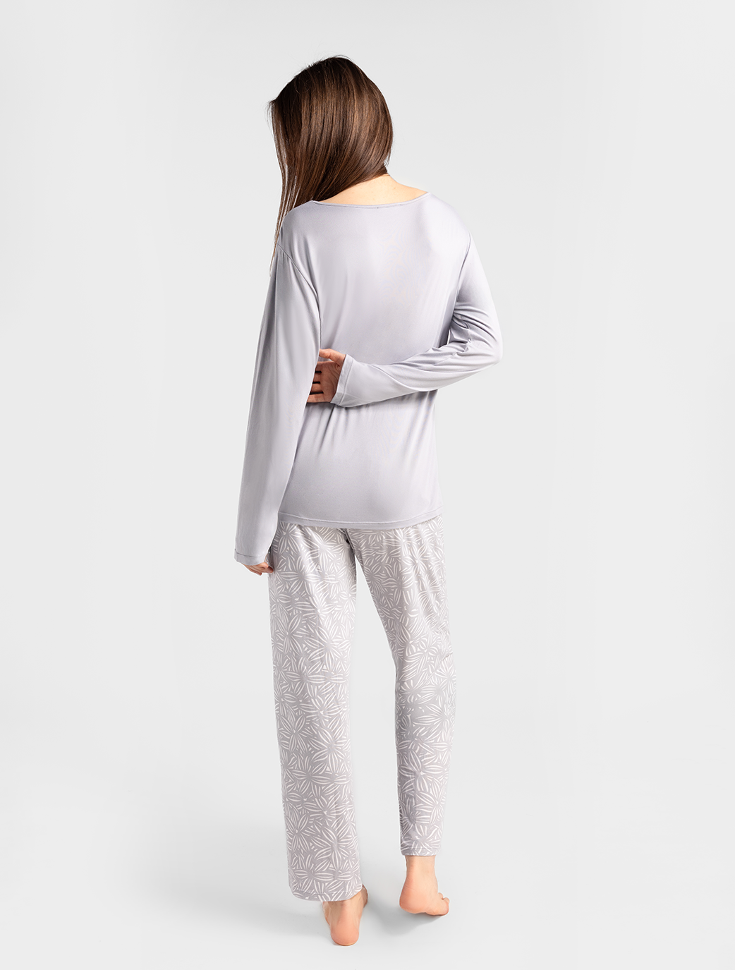 Flero PJ set blends a soft grey melange background with gentle floral prints, creating a cozy and graceful bedtime look. Featuring a matching top and pant made from ultra-soft micro fabric. Designed for all-night ease, the lightweight material feels silky-smooth on the skin.