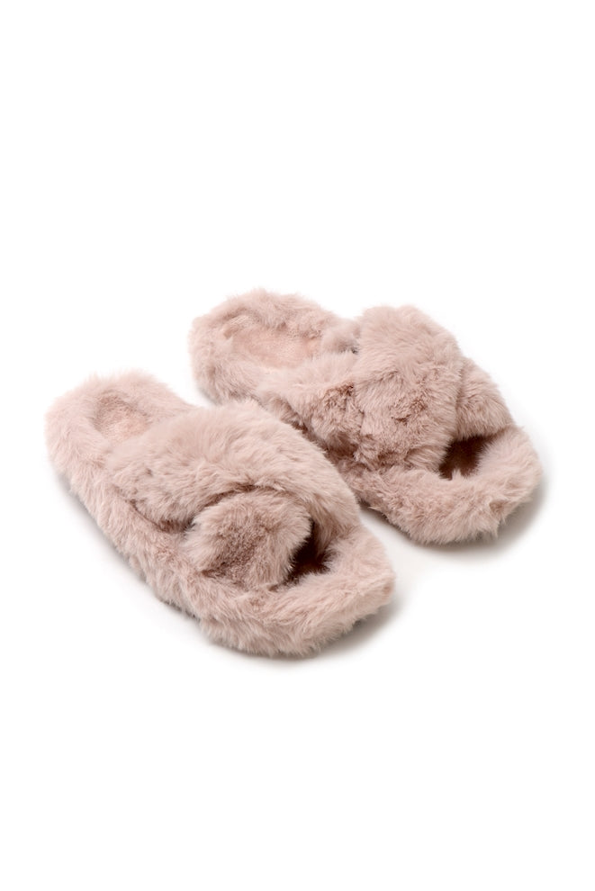 Our Glowy slipper features a cross over top slide on with the softest material to keep you warm and cozy.