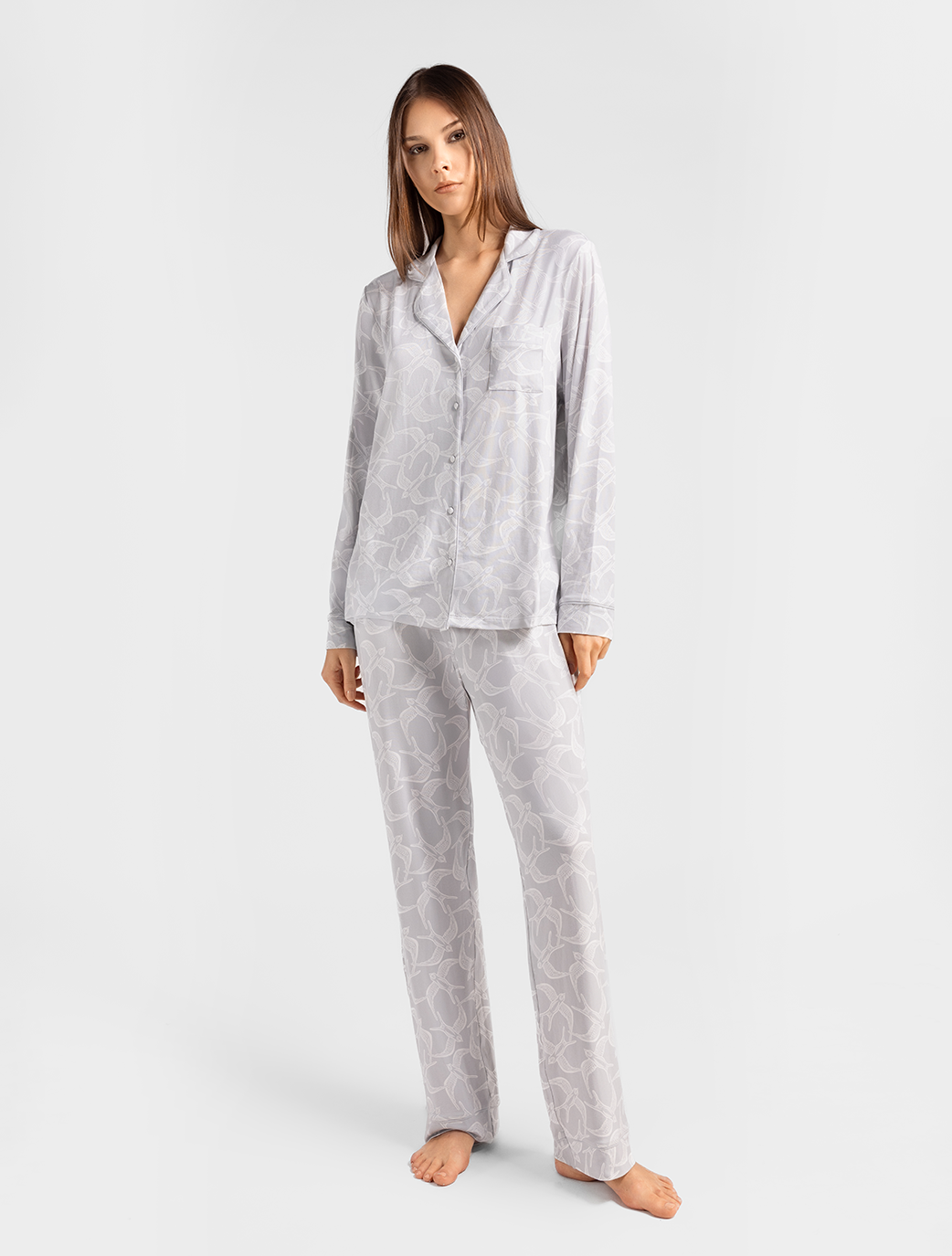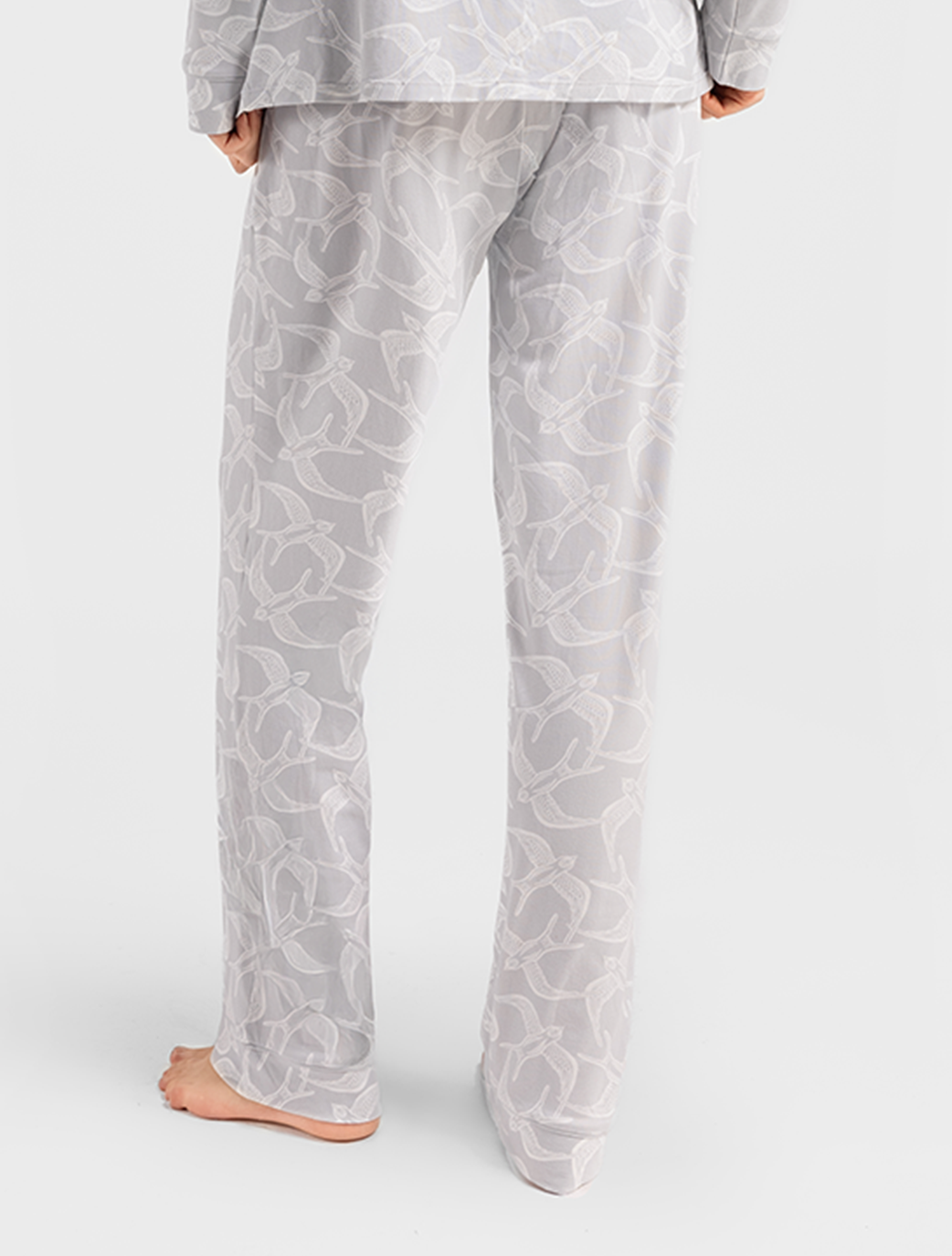 Enhance your relaxation time with these ultra-soft micro pajamas, adorned with a playful bird print for a touch of whimsy and comfort.