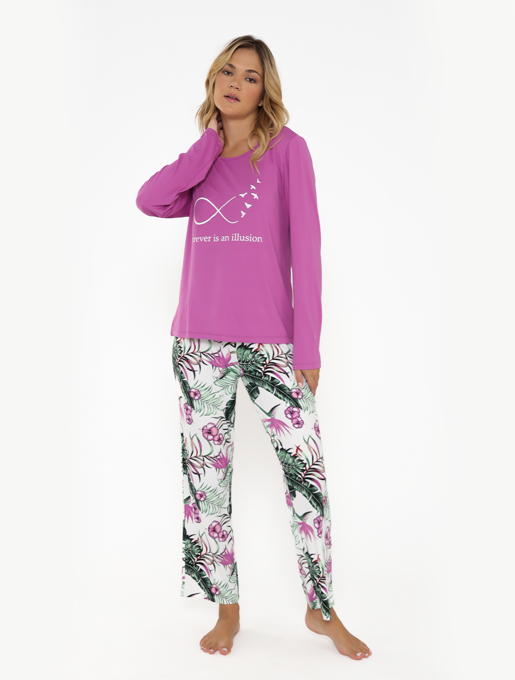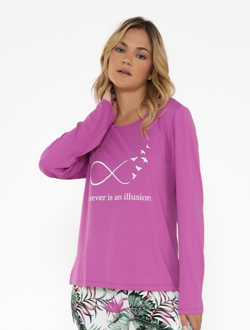 Forever in illusion writing adds a touch of uniqueness to this pyjama, making it a statement piece in your nighttime wardrobe.