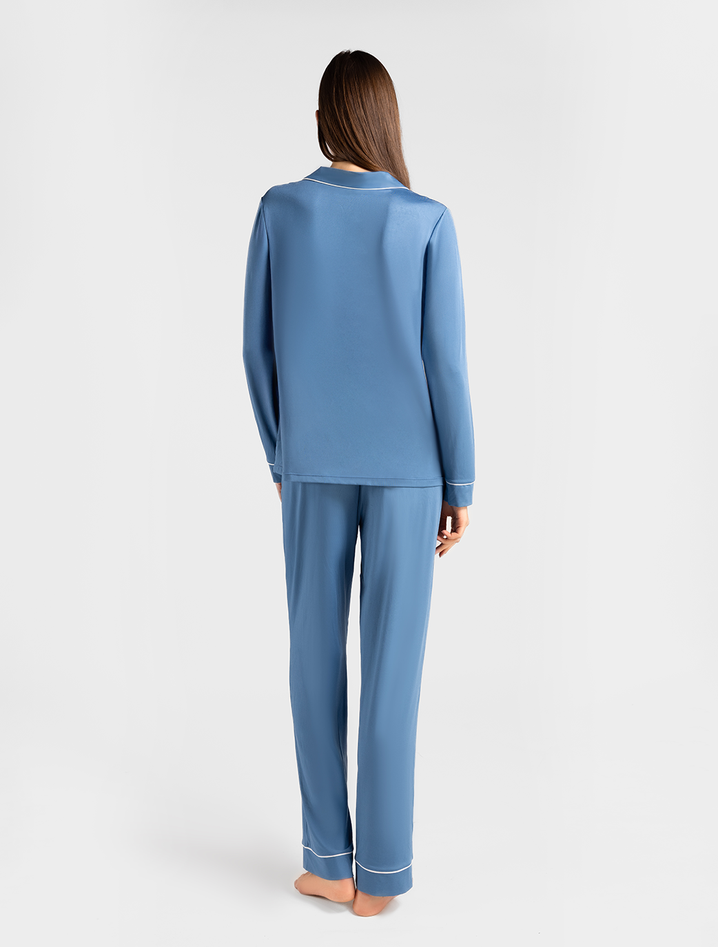 A sleek and elegant micro satin chemise in a rich navy color, that offers a soft, lightweight feel and a refined look for any nightwear evening.
