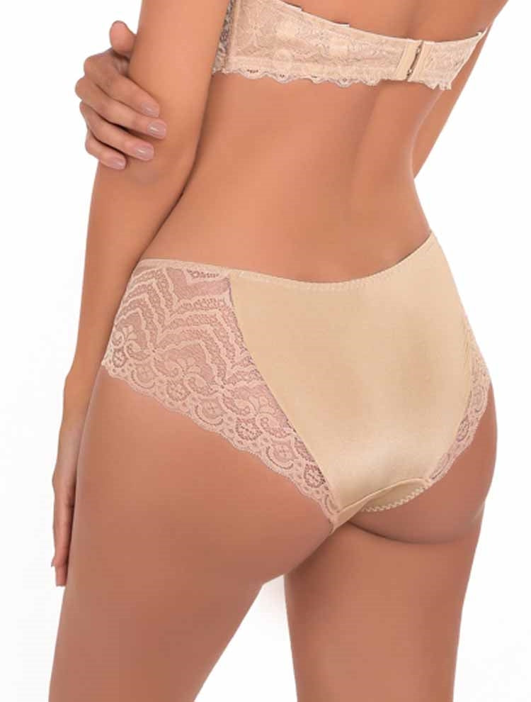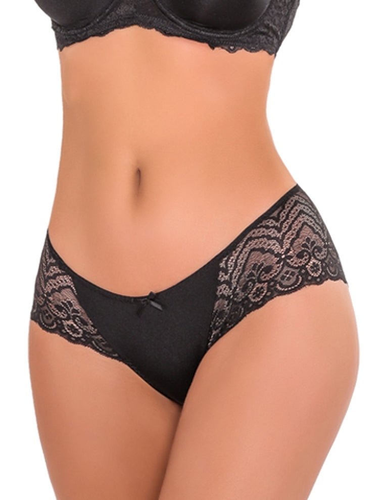 Laura is a comfortable Brazilian panty with a wide lace design wrapped around the hips and back coupled with a microfiber front