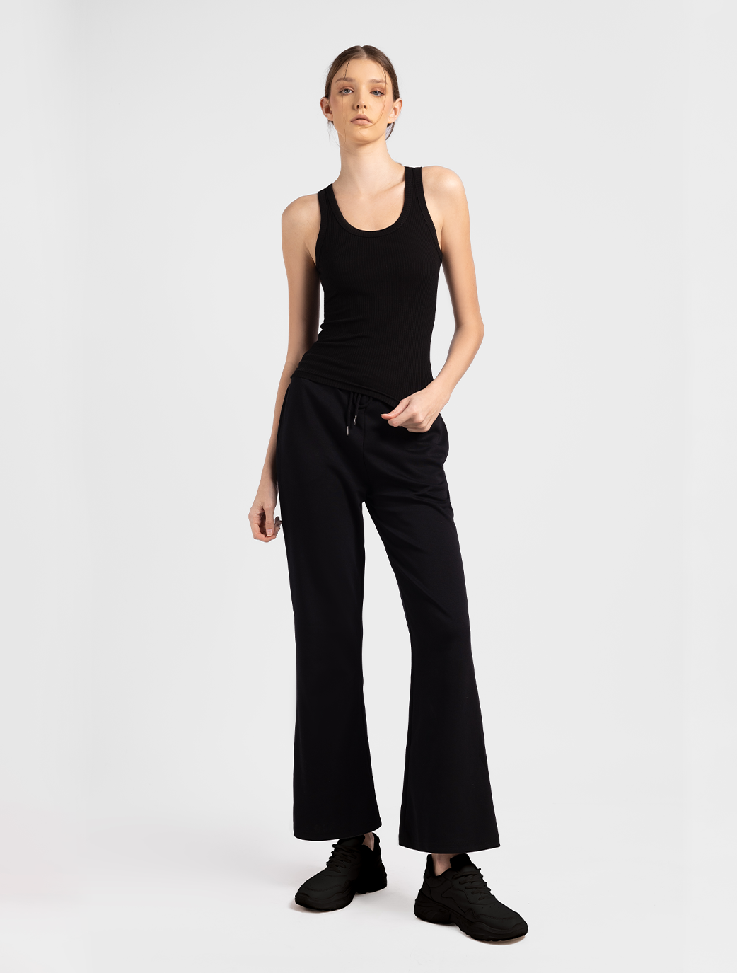 These trousers are the perfect soft layering staples for a smooth transition between seasons. They feature a flared silhouette that hugs the thighs and flares out for a flattering fit.
