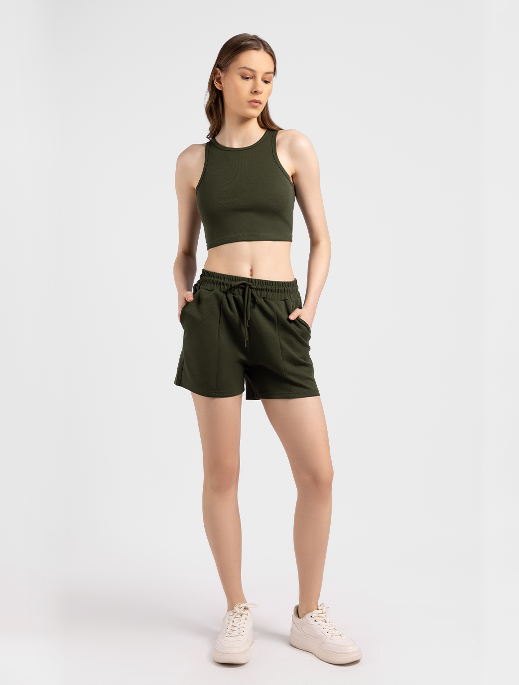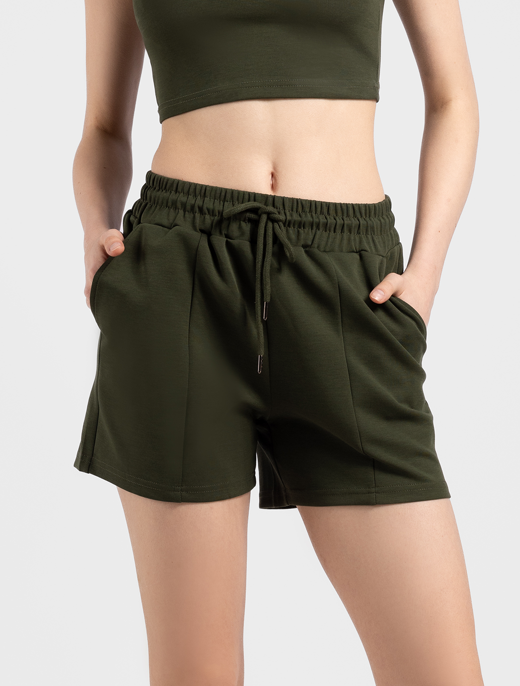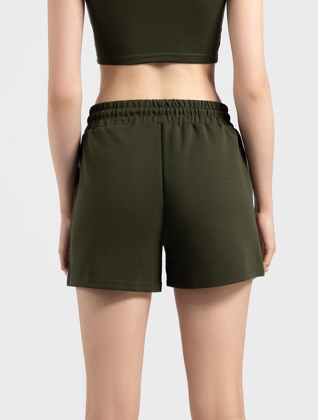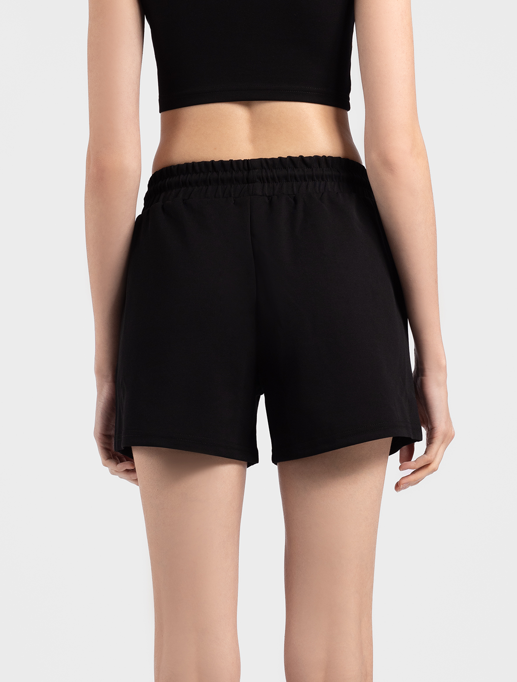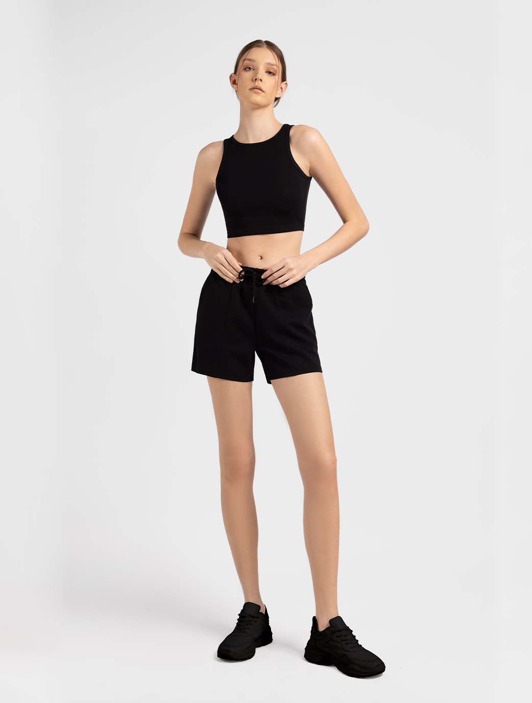 Versatility at its core. Inspired by modern loungewear styles, these relaxed shorts feature a wide elasticated waistband for a comfortable fit. Crafted from lightweight ribbed cotton fabric, they offer an adjustable waistband for a customizable fit and added comfort.