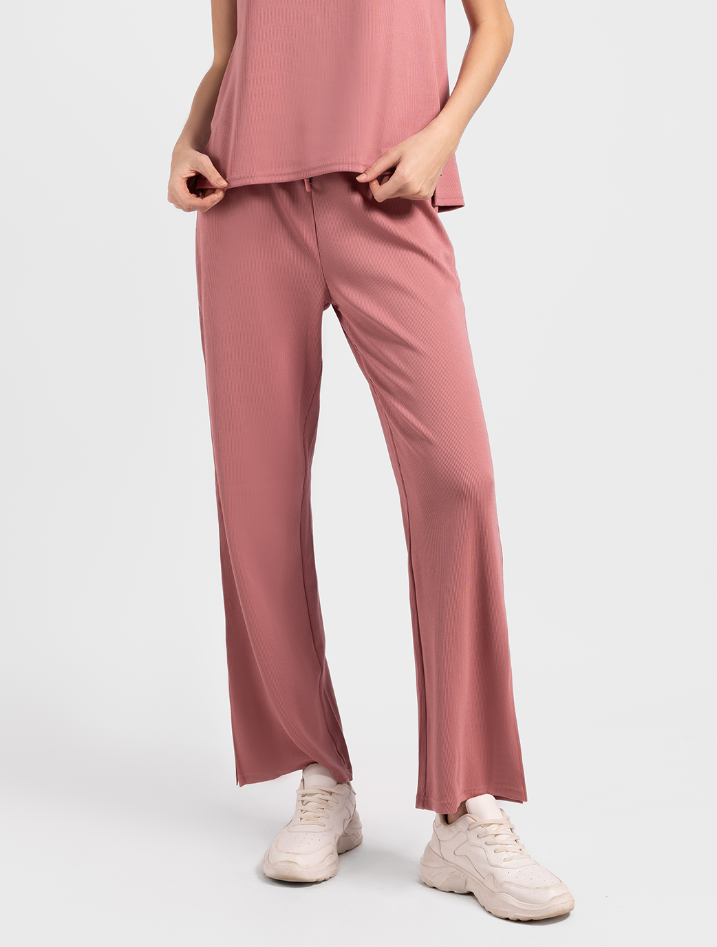Elevate your loungewear collection with these game-changing Loola pants, designed for ultimate comfort and style. Made from lightweight ribbed cotton fabric, they feature a relaxed wide-leg silhouette. The elasticated drawstring waistband ensures a customizable fit, while two practical side pockets add functionality.