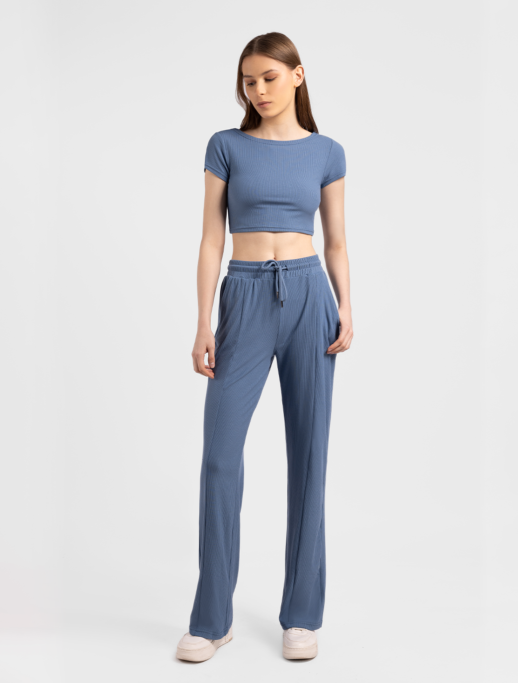- Elasticated waistband with concealed drawstring