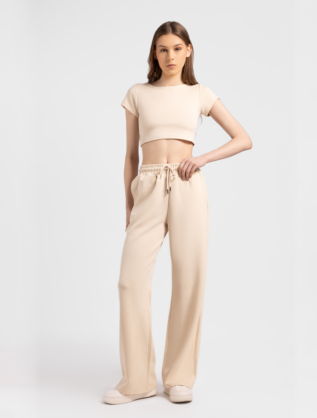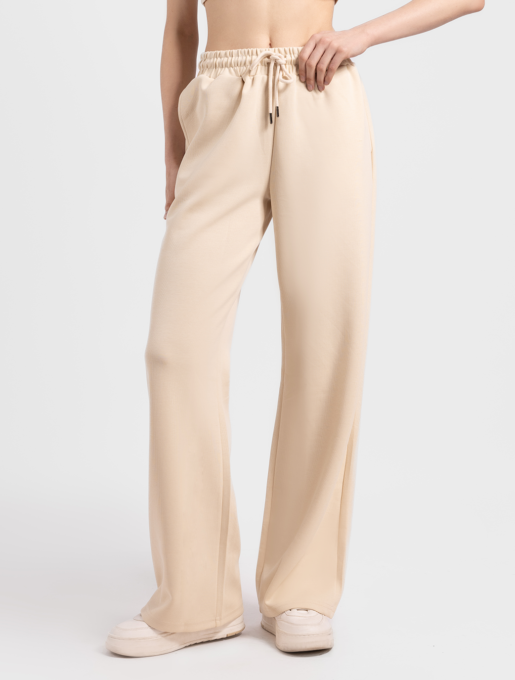 - Elasticated waistband with concealed drawstring