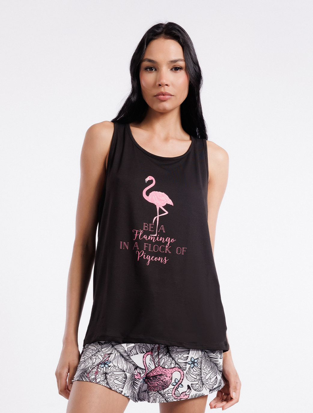 Introducing our charming pajama I-shirt adorned with a delightful flamingo print, adding a playful touch to your nighttime attire.
