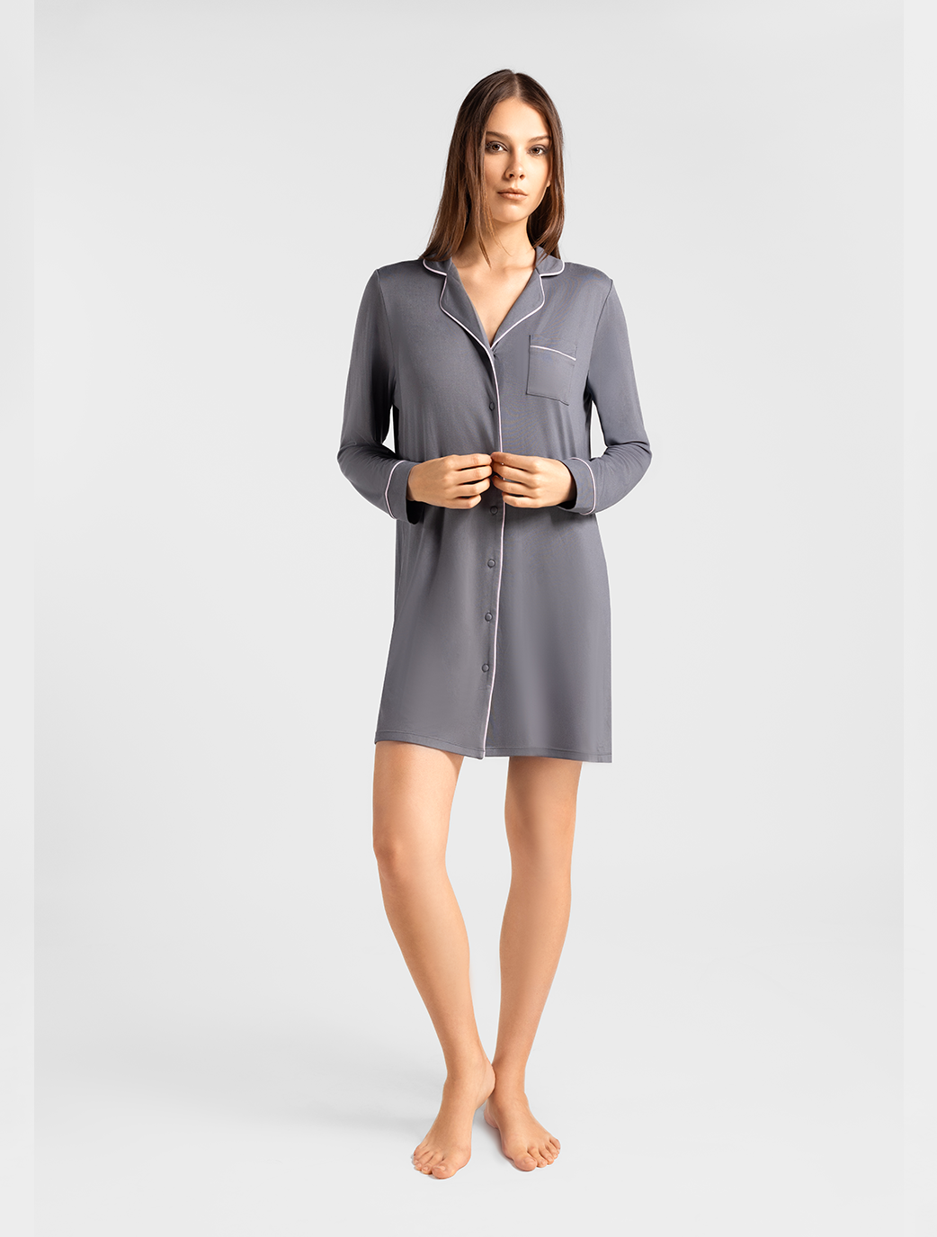 A new addition to our nightwear collection, this pajama dress chemise is effortlessly soft and elegantly simple. Available in two timeless colors, it offers a relaxed fit for all-night comfort and understated charm.
