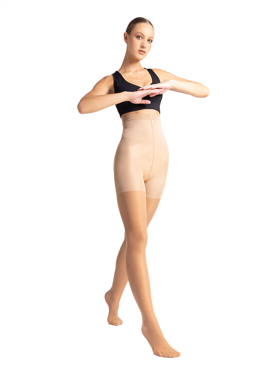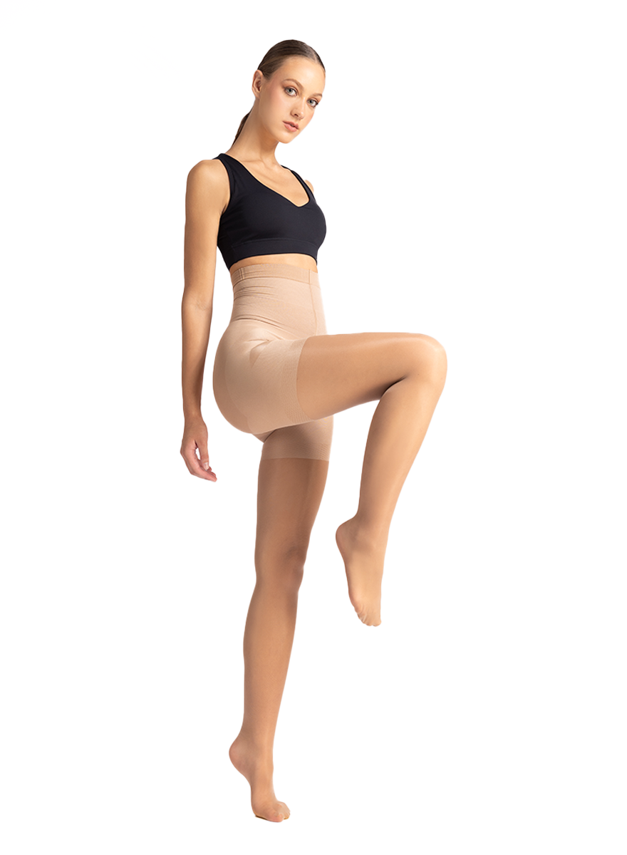 Women's Rio Up Taille Haute 20 denier sheer push-up tights are designed using a premium power leg and an updated built-in shaper with an invisibly smooth center front seam. High waist with cotton gusset and reinforced toes.