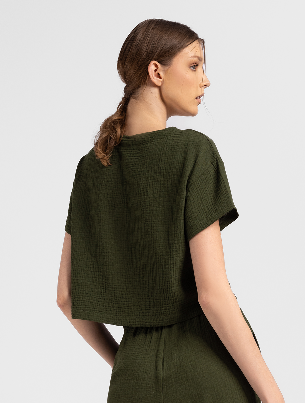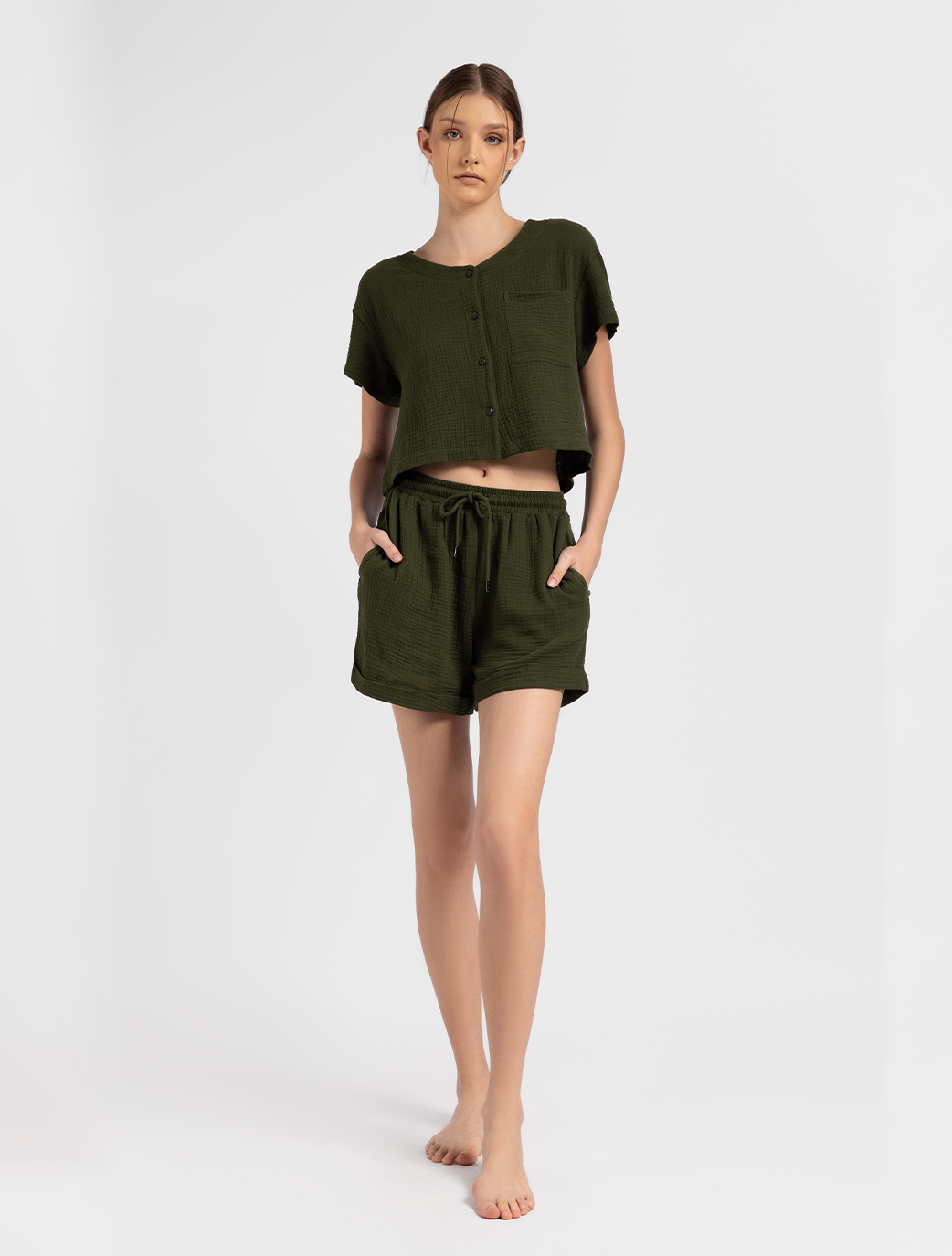 Ritala Chemise is a simple and comfortable piece made from soft material. It features a U-neck design and is available in a dark green color. Perfect for lounging or casual wear.