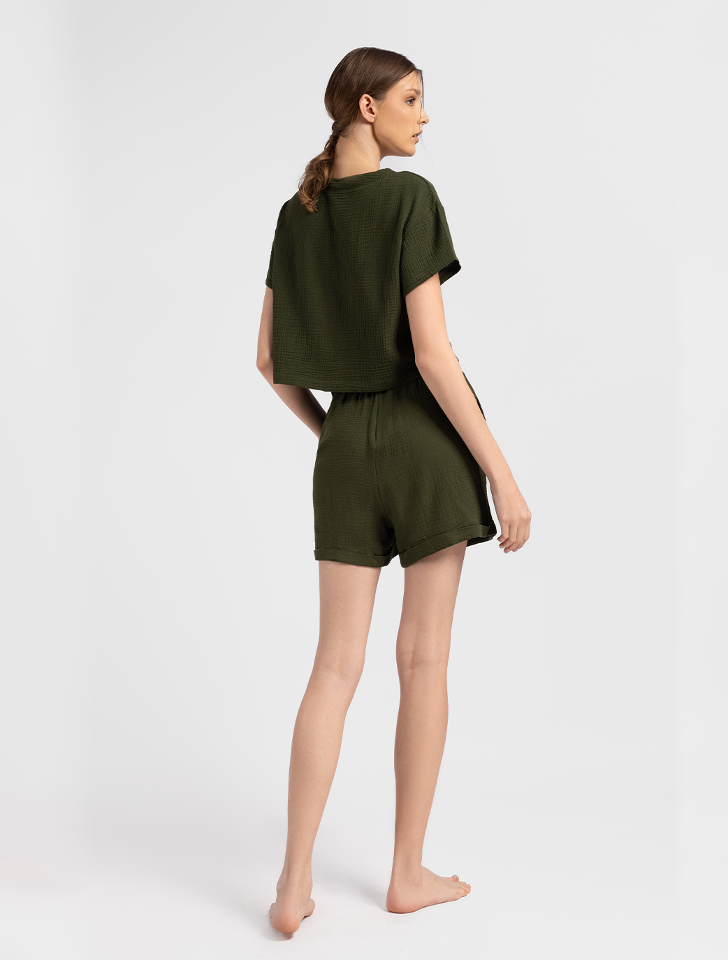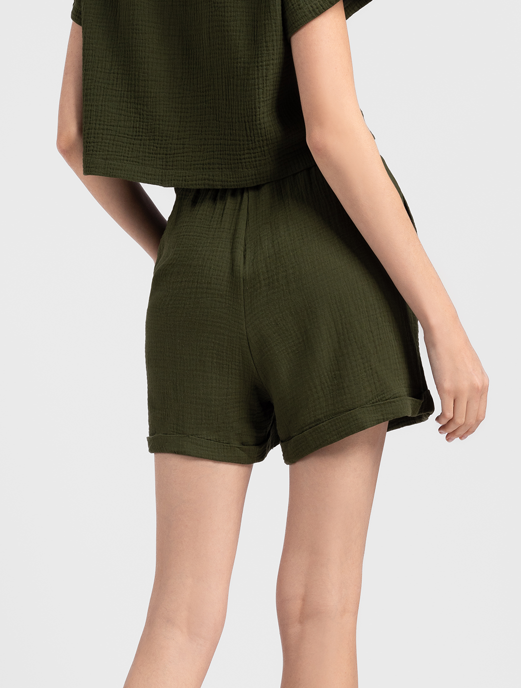 Ritala Short is made from soft, comfortable material and features a tie waistband. Available in dark green, it offers a relaxed fit, making it perfect for lounging or casual wear.