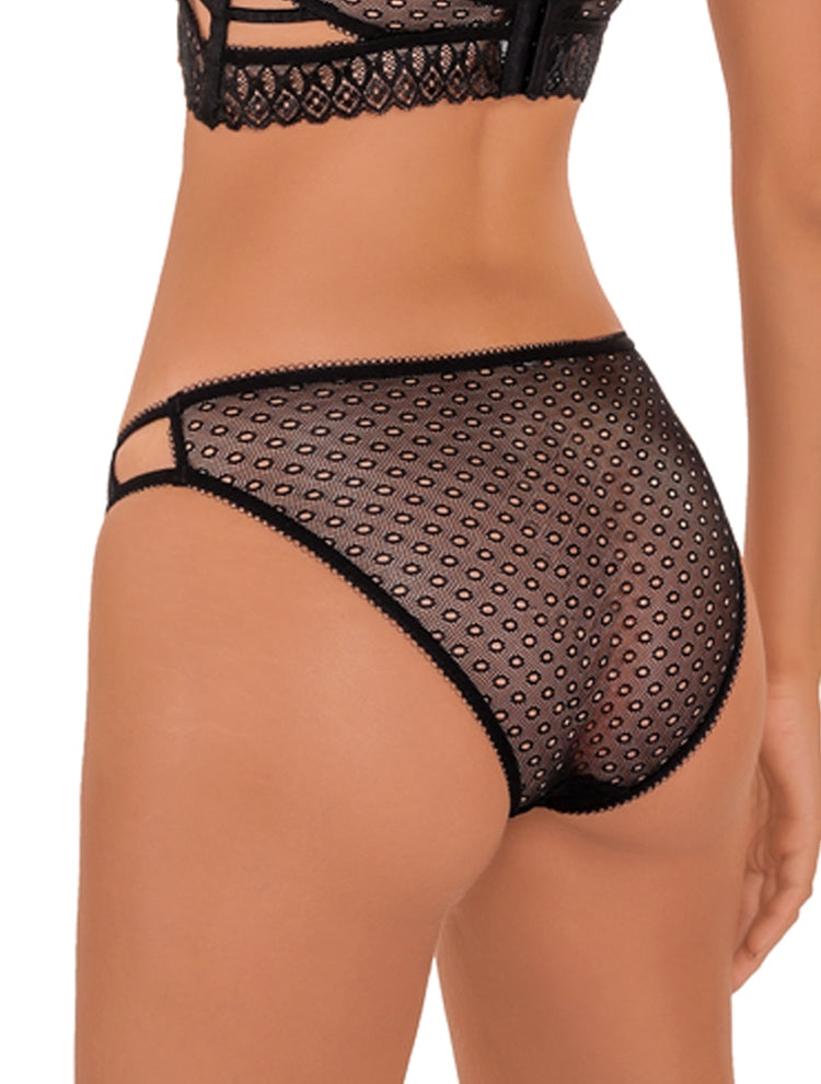 Rosa is an intriguing lace and mesh brief panty with diamond shaped holes for an extra touch of sexy.