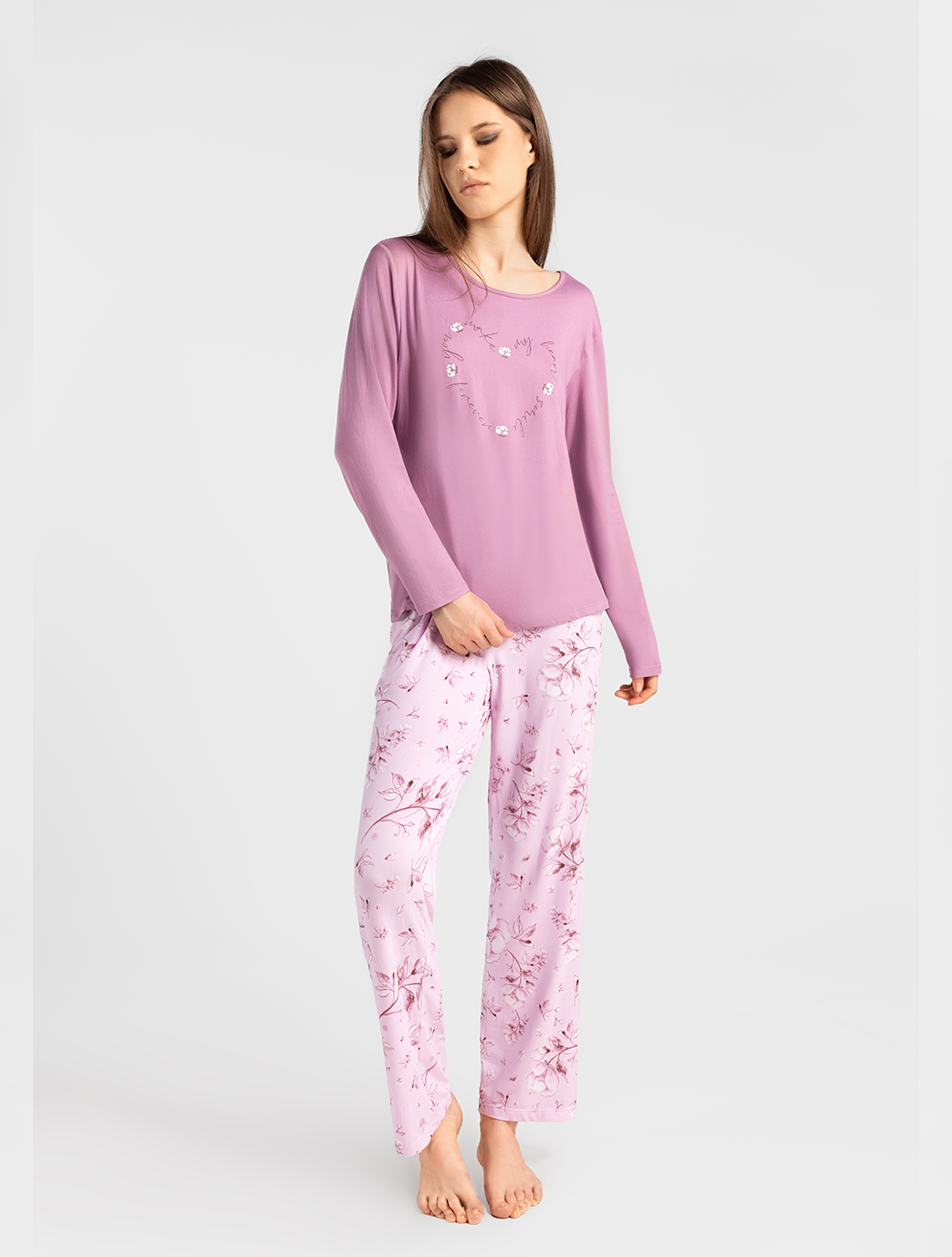 Sink into comfort with Rosarin Pajama Set, crafted from ultra-soft micro fabric for ultimate comfort. This two-piece set includes floral-printed pants paired with a solid pink top, striking the perfect balance between elegance and ease. Lightweight and breathable, it's your go-to choice for cozy nights and relaxed mornings.