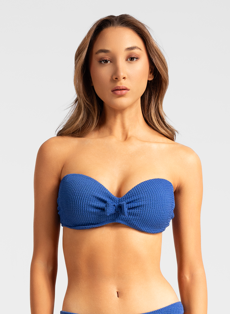 The oh-so-flattering cut of this bandeau bikini top will make you want to show off your sun-kissed glow! With adjustable and removable straps, it can be styled in a variety of ways.