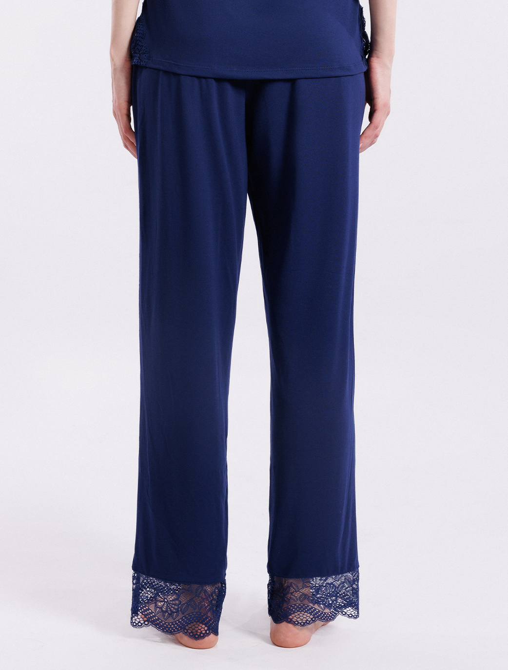 Soft pajama pant featuring delicate lace trims along the hemline for a touch of elegance.