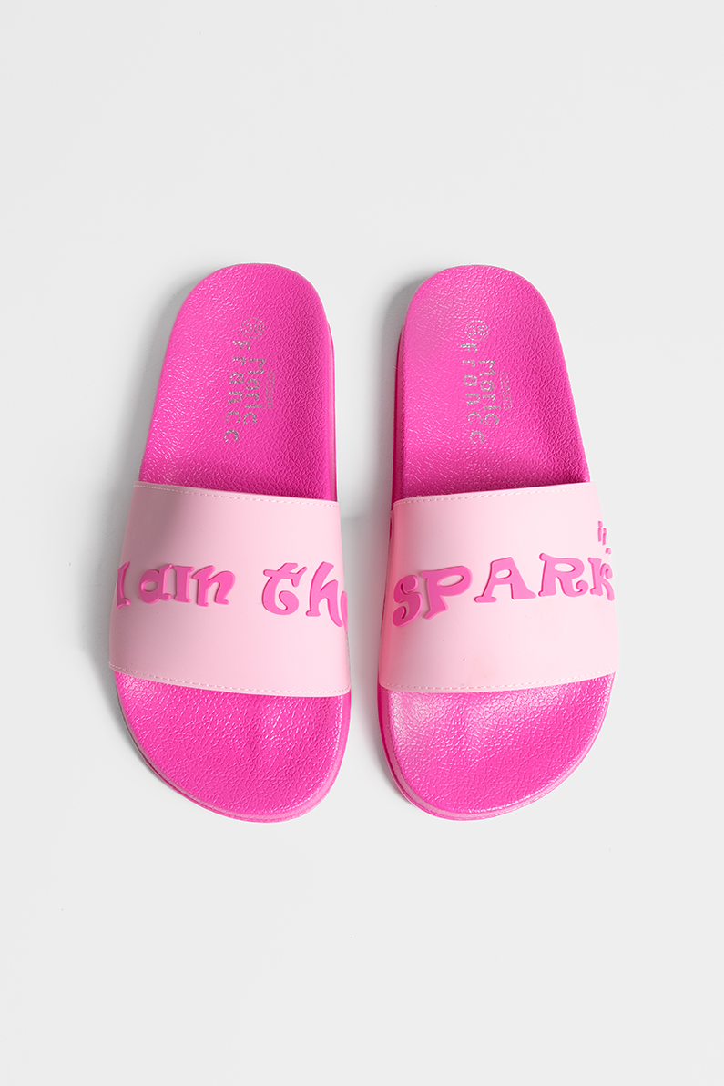 Add a pop of color to your summer essentials with our Sparked Slider, featuring a thick band strap in vibrant fuchsia and soft light pink. Lightweight and comfortable, this stylish slide is perfect for the beach, poolside, or casual outings.