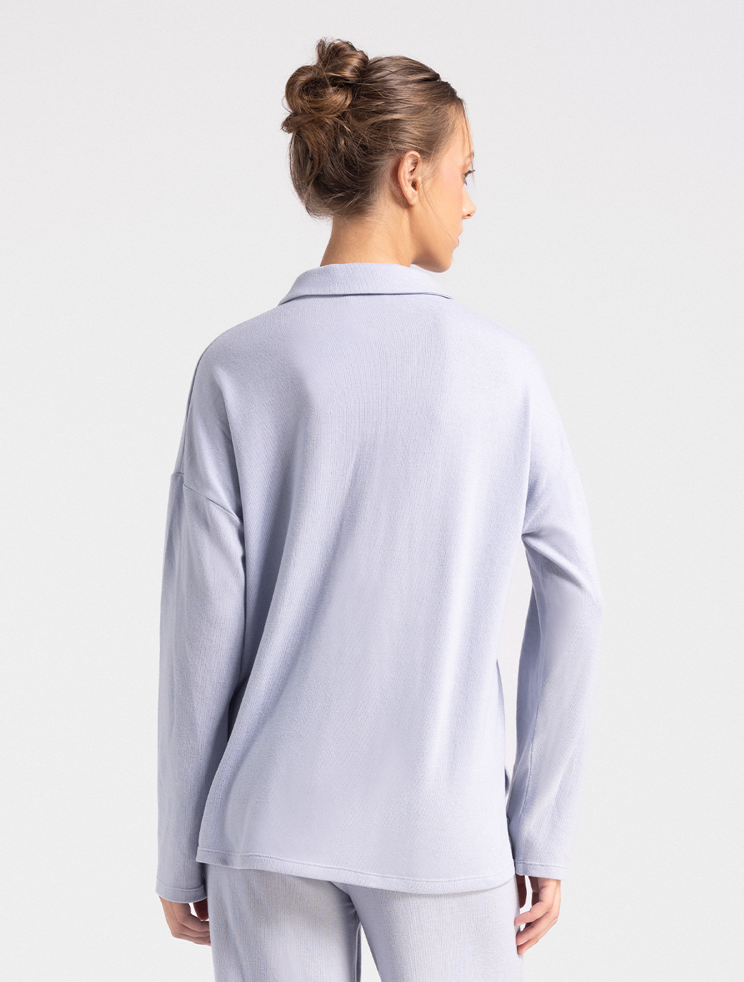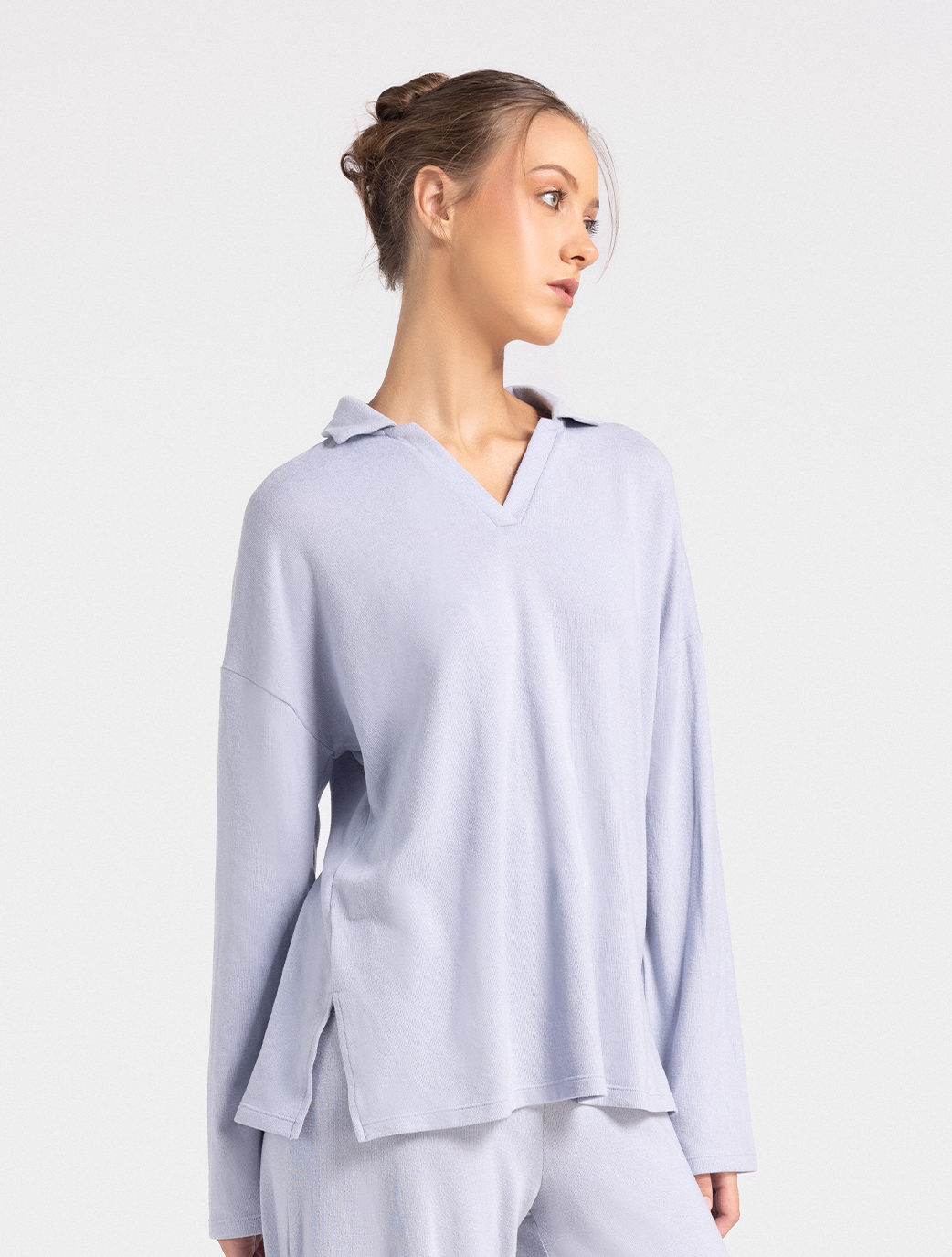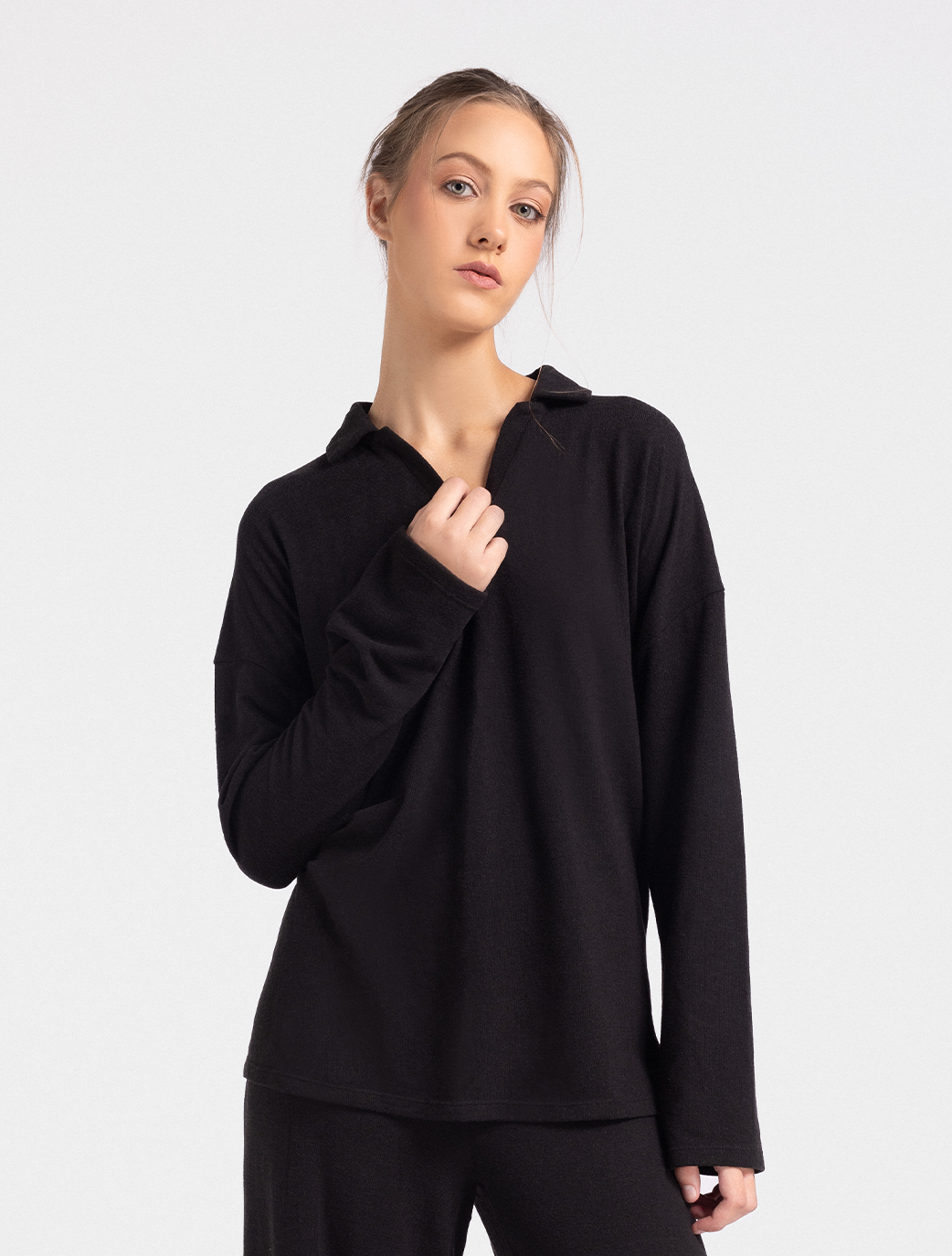 Elevate your homewear with this stylish long sleeve tee. The versatile collar makes it suitable for both indoor and outdoor activities.