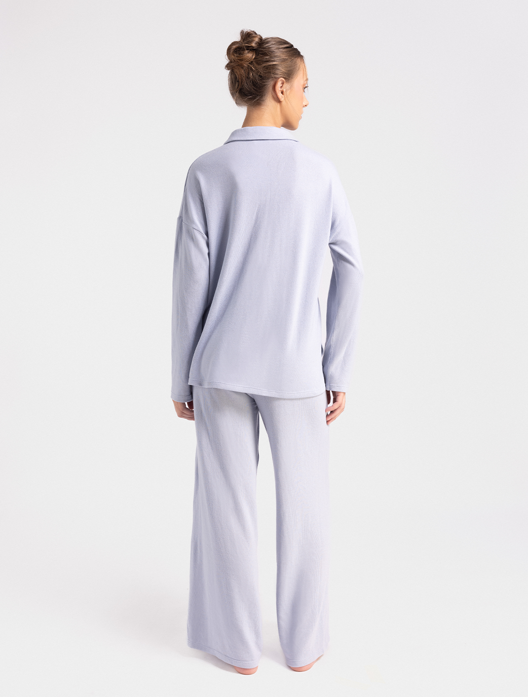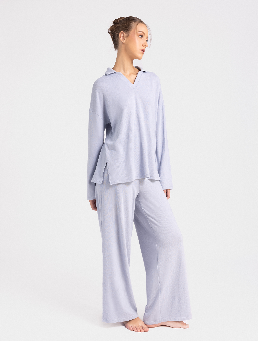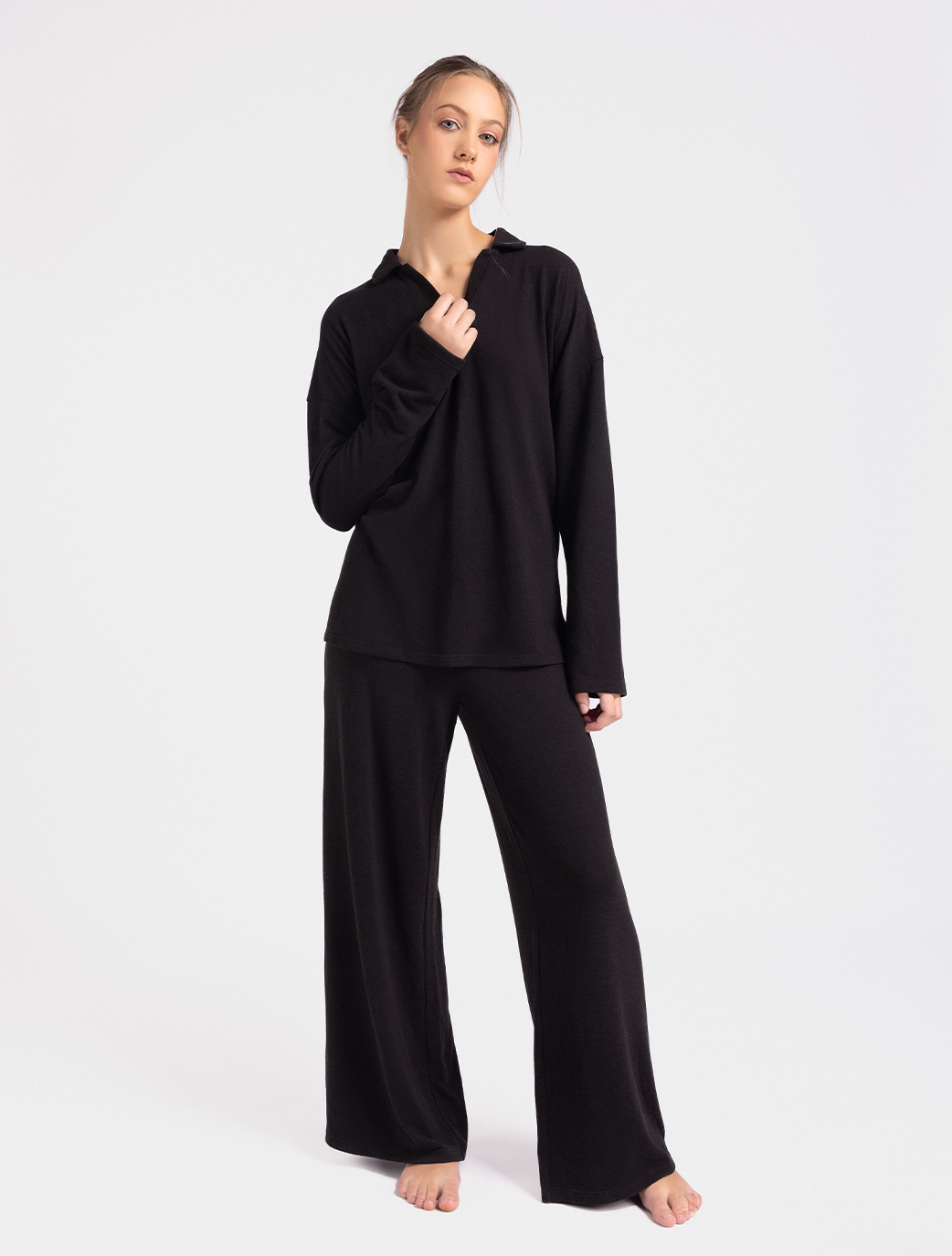 Elevate your homewear with this stylish long sleeve tee. The versatile collar makes it suitable for both indoor and outdoor activities.